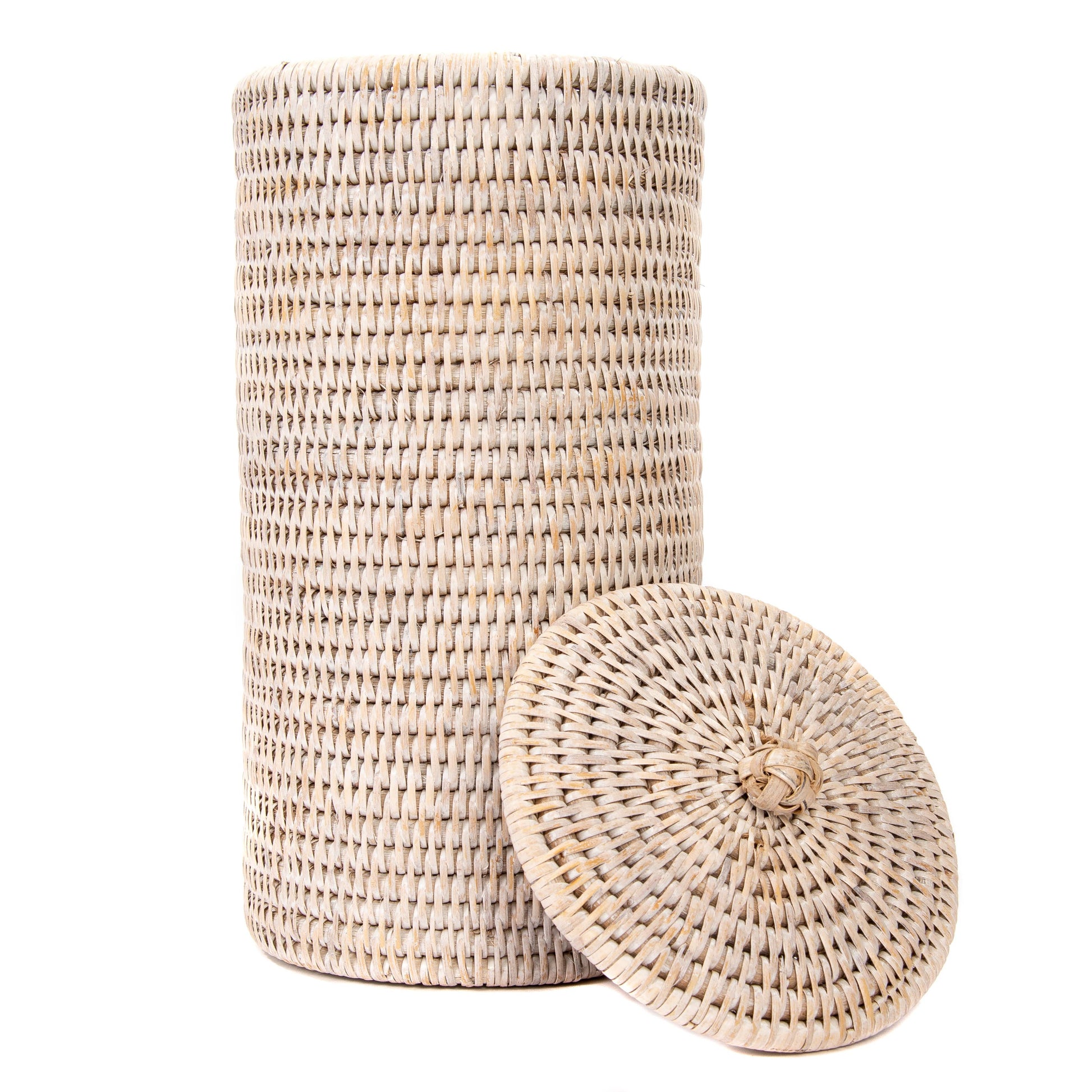 Made with a tight weave and durable construction, our round tissue roll storage boxes keep your bathroom neat and elegant. Products are handmade, each piece is unique therefore slight variations and imperfections exist.