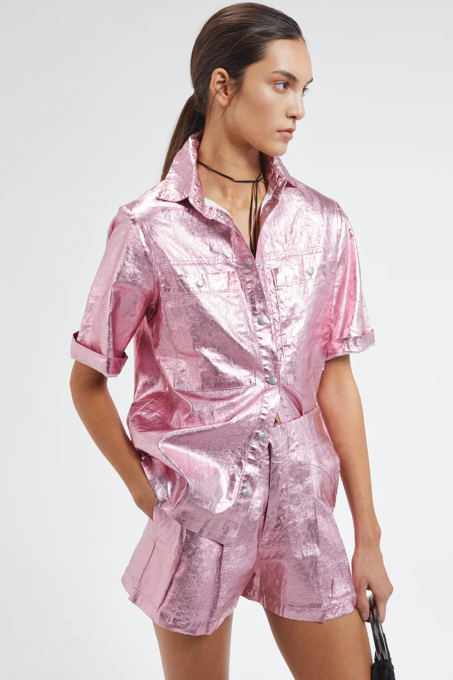 Perfect for layering, the Soho Shirt in metallic linen is one of our favorite styles of the season. With minimalist lines and an androgynous vibe, this boxy oversized piece elevates any outfit.