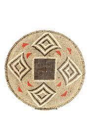 Large: 24-25"D x 5"T. Materials: palm leaves, twigs, recycled plastic.