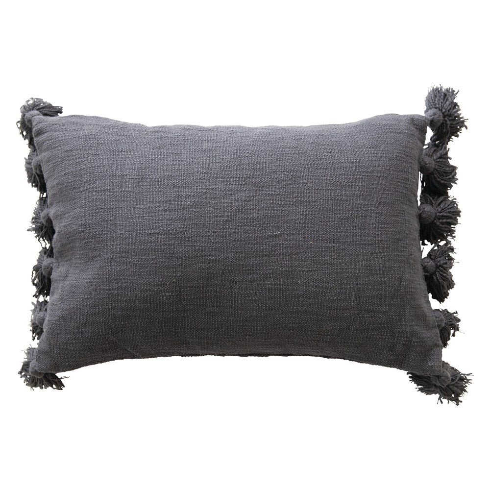 24"L x 16"H Cotton Slub Lumbar Pillow with Tassels, Midnight Blue
