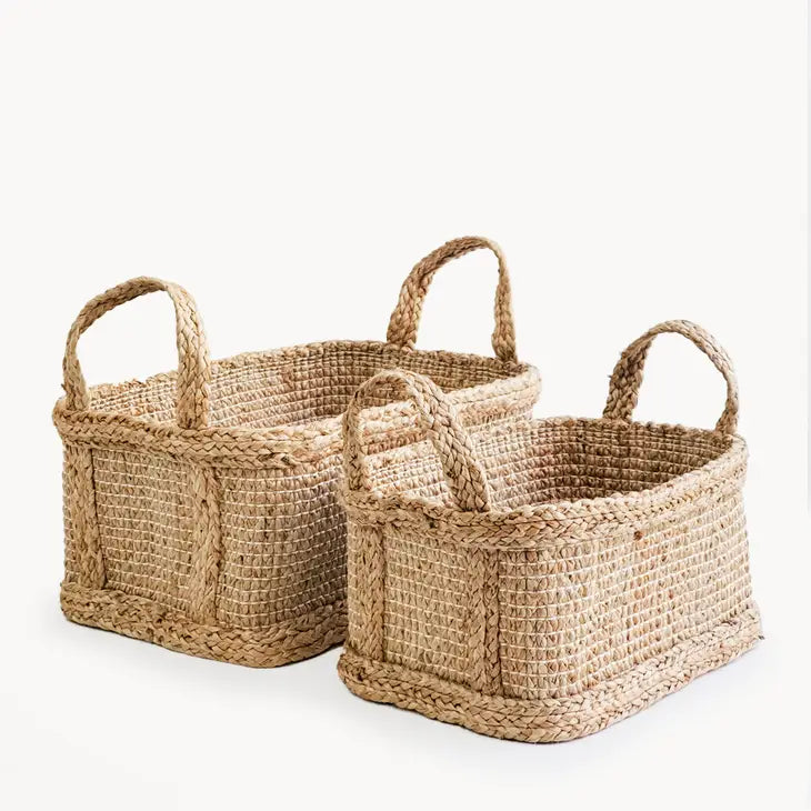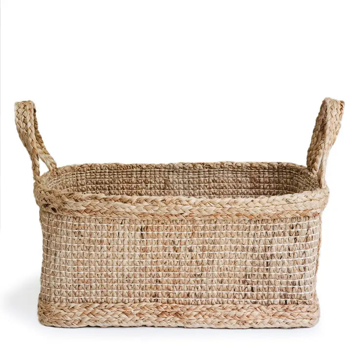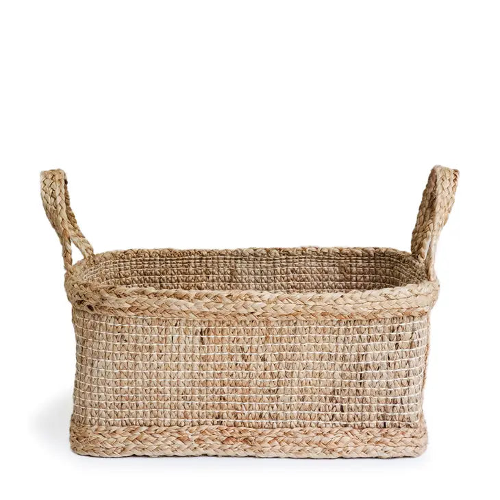 Beautifully handwoven with thick braided jute, this rectangular wicker jute basket will be the new storage option for your home or office. Perfect for organizing everything from hand towels, rolled towels or toilet rolls, scarves, socks, cleaning supplies, napkins and cutlery, children's toys, pet supplies, seasonal declutters...the options are endless.