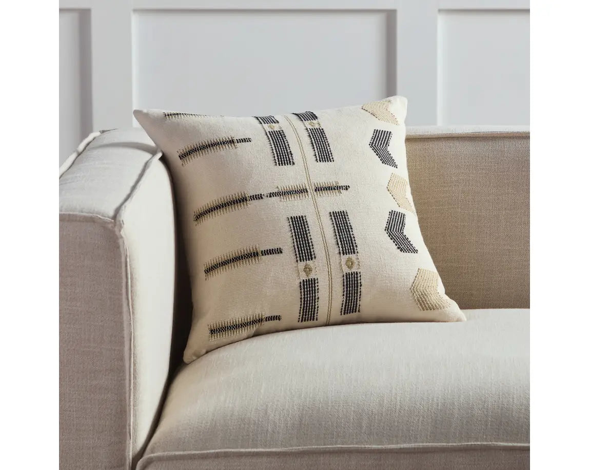 Handmade by weavers in Nagaland, India, the Nagaland collection showcases the traditional loin-loom techniques of the indigenous tribes of the region. The artisan-made Lumami throw pillow effortlessly combines heritage-rich tribal patterns with a versatile cream, black, and tan colorway for a stunning statement in any space. Crafted of soft, finely woven cotton, this pillow brings the global art of Naga textiles to the modern home.