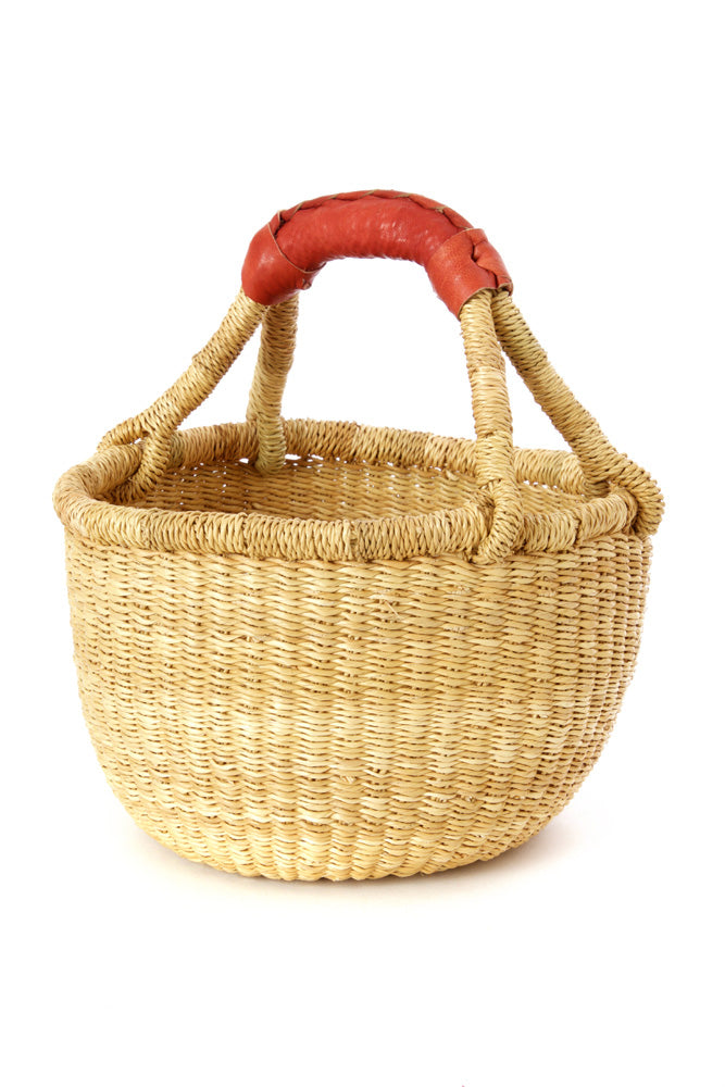 Natural Baby Ghanaian Bolga Basket with Leather Handle