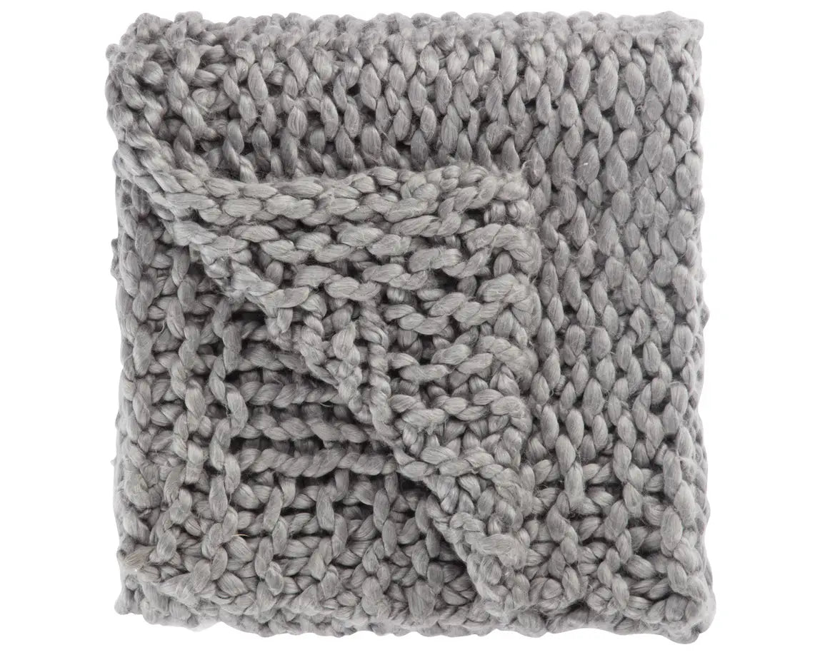 This ultra-plush Nikki Chu throw blanket embraces the elegant and inviting craftsmanship of Danish style. Knitted of sumptuously soft acrylic, this chunky and extremely plush accent explores the Nordic concept of hygge, a feeling of the ultimate comfort, contentment, and warmth. A sophisticated gray hue lends versatile charm to this soft cover.