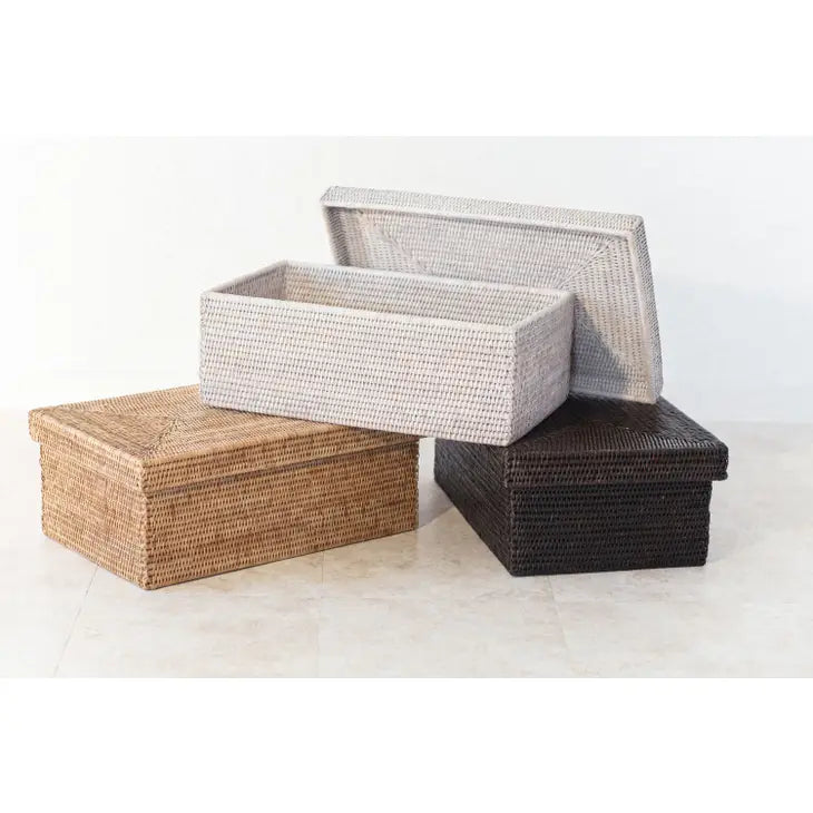 Keeping your home organized can completely change your attitude and our handwoven baskets will help you do just that. This rattan storage box will help you show off your decorations with ease and class and fits with any room in the house. Our product will help you add that extra bit of storage that can make a real difference and keep your space organized. Woven from burmese rattan which is natural and sustainable, our products come stained in honey-brown, tudor black, or white wash. Products are handmade and each piece is unique therefore slight variations and imperfections exist. -Hand woven by local artisans from burmese rattan -Natural and sustainable product -Wipe clean with damp cloth