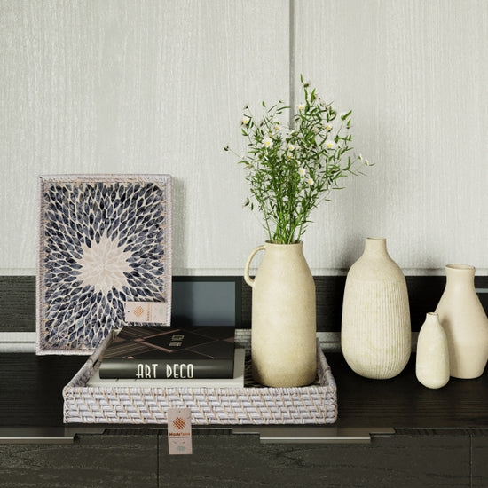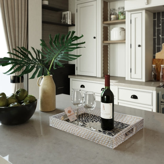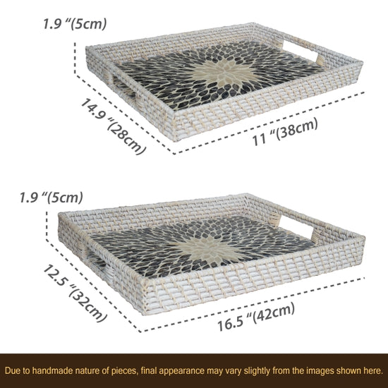 Rectangle Rattan Tray With Nacre Base- Blue Large