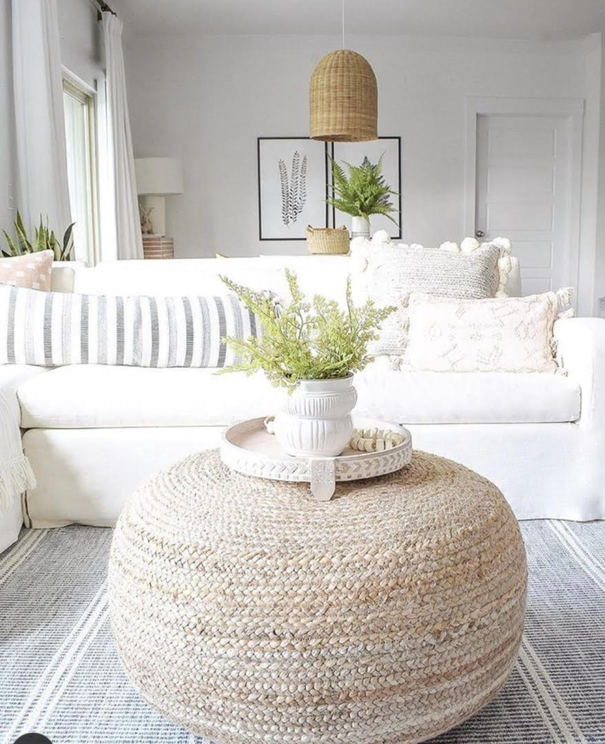 The Saba pouf collection offers natural, organic-inspired style to any home. Handwoven of braided jute, the texture-rich Mesa pouf lends global vibes to any living space with a chic, bleached white colorway