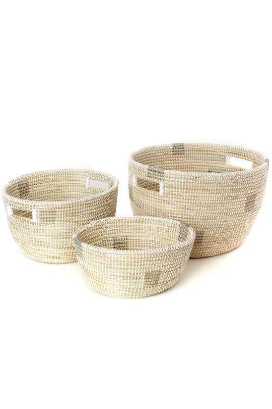 Handwoven by skilled Wolof women in Senegal, West Africa, this lovely set of three baskets incorporates modern African style into your decor without sacrificing function.